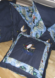 Fügen Sie verschiedene aufeinander abgestimmte Stoffstücke zu einem Gesamtbild zusammen.