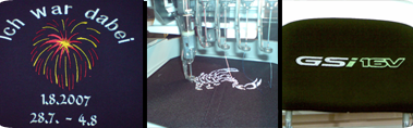 Wir sticken Ihr Firmenlogo auf diverse Textilien, seien dies nun T-Shirts, Jacken, Pullover oder Baseball-Caps.